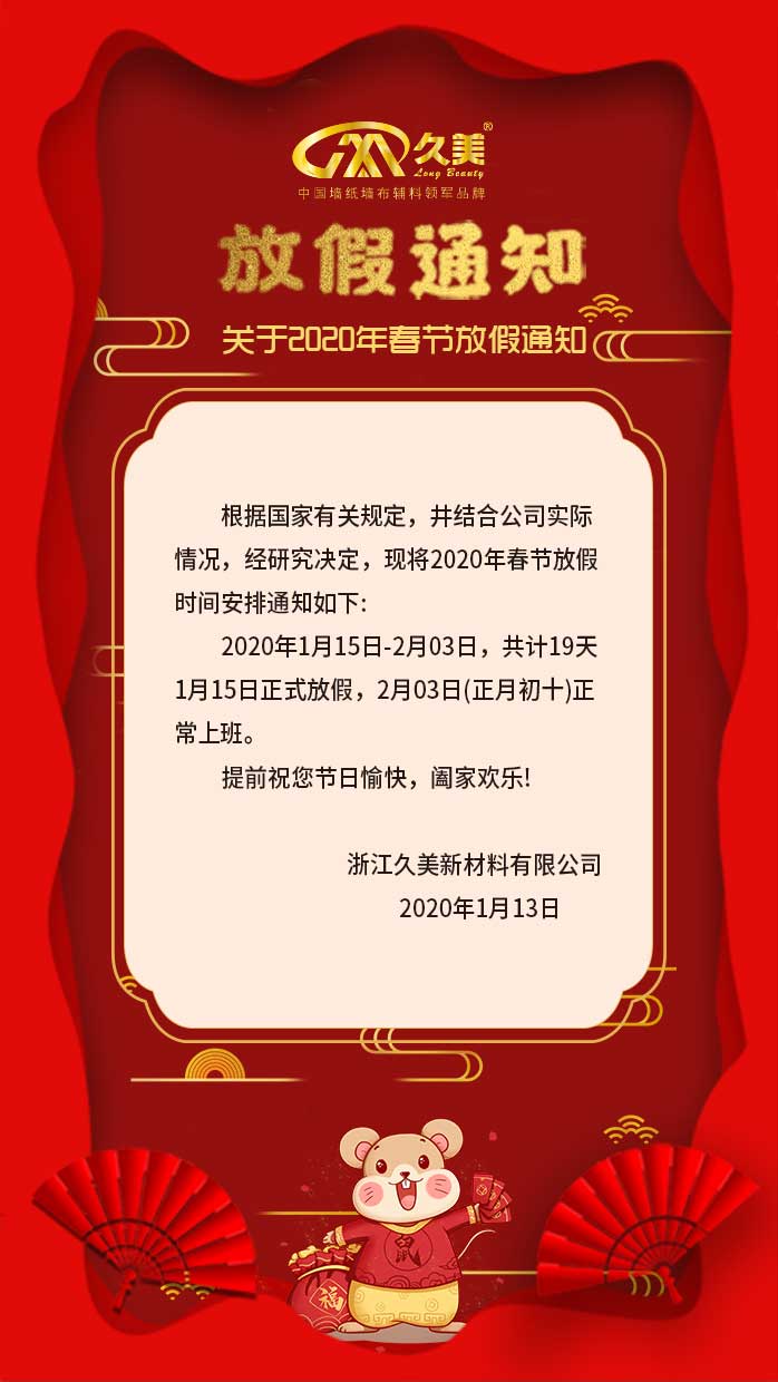 根据国家有关规定,并结合公司实际情况,经研究决定,现将2020年春节放假时间安排通知如下: